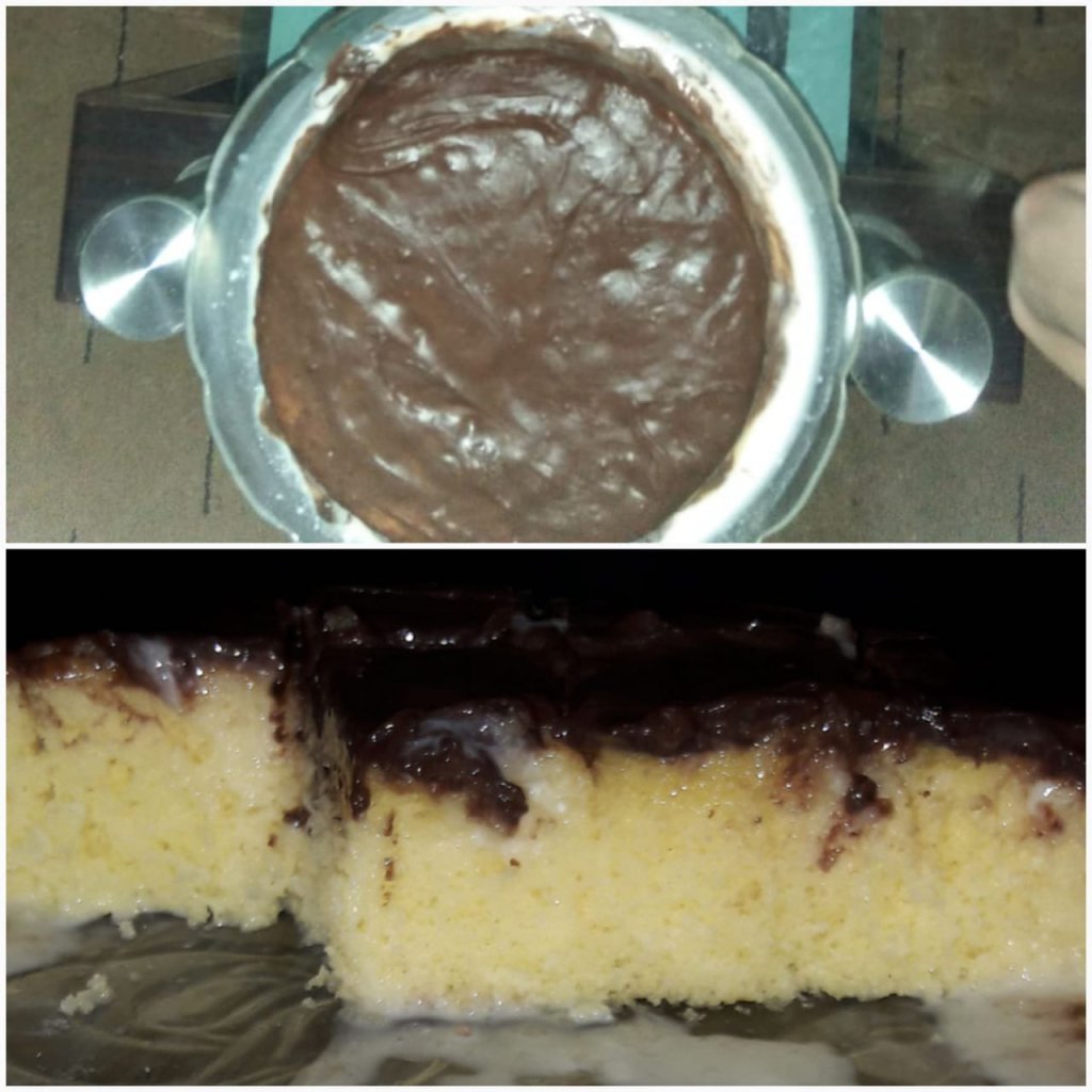 Mix together the sweetened condensed milk with evaporated milk and cream.Once cooled transfer cake to a plastic wrap lined pan. Prick well the cake with a skewer.Pour the milk mixture over the cake. Cover with plastic wrap and refrigerate for a few hours or overnight. Remove the cake from the pan and transfer to a serving platter.