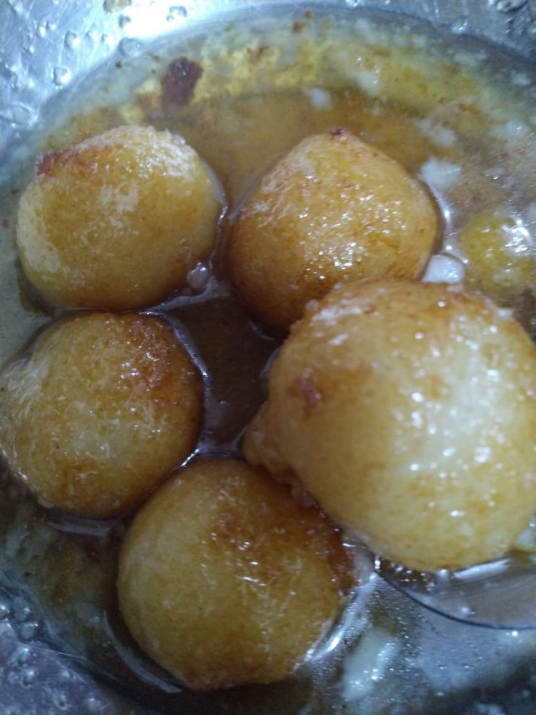Now make small balls from the dough and fry till golden brown or dark brown whatever you like in gulab jaman..