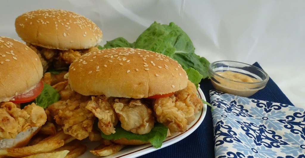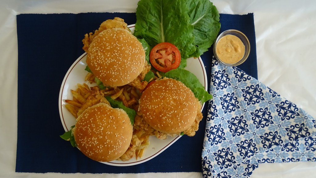 Now apply burger sauce on both sides of bun, place fried chicken and lettuce/ ice- berg or whatever toppings you want to add.