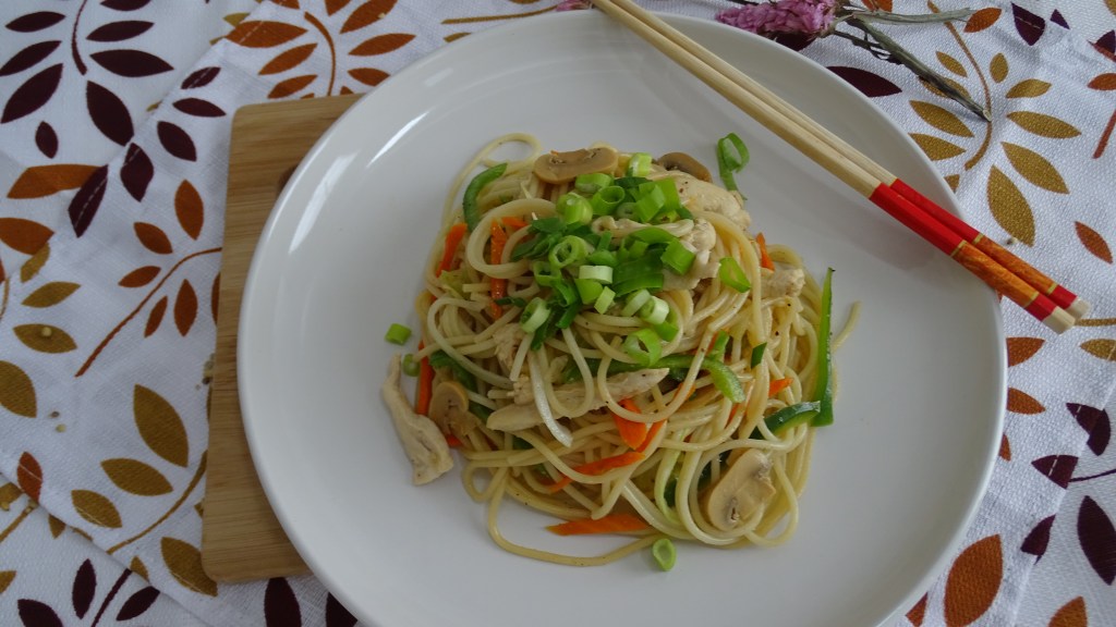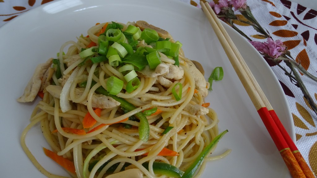 In a pan, sauté garlic and add chicken, cook till chicken is tender,