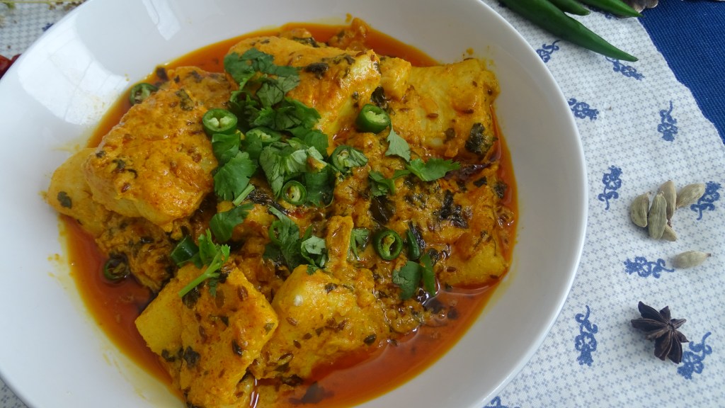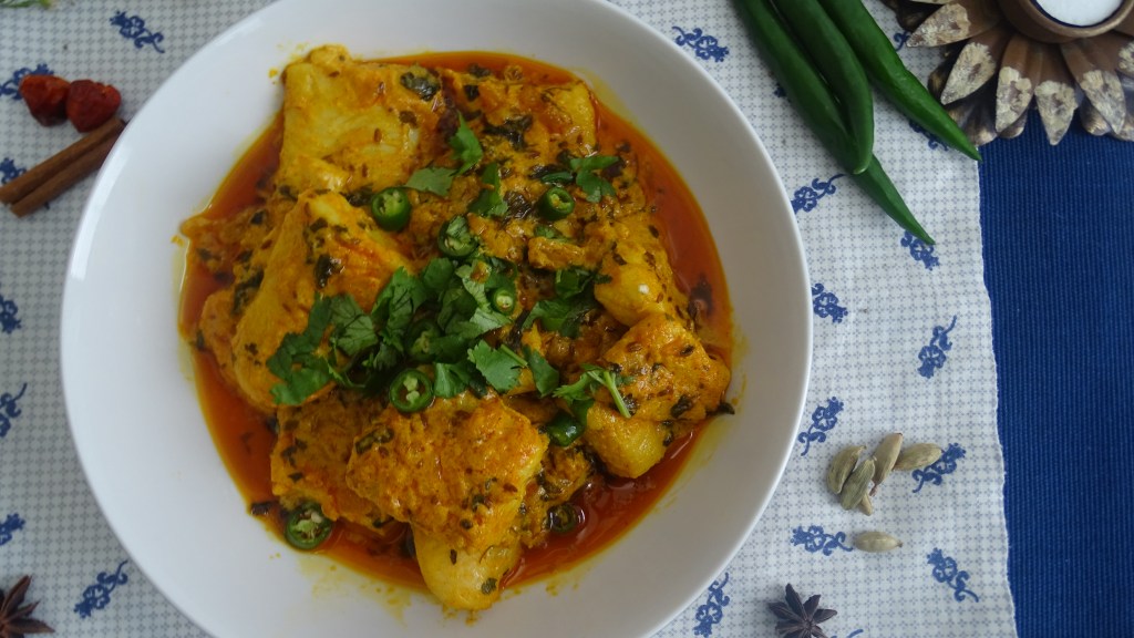 When fish is tender cook on high flame to thicken the gravy,