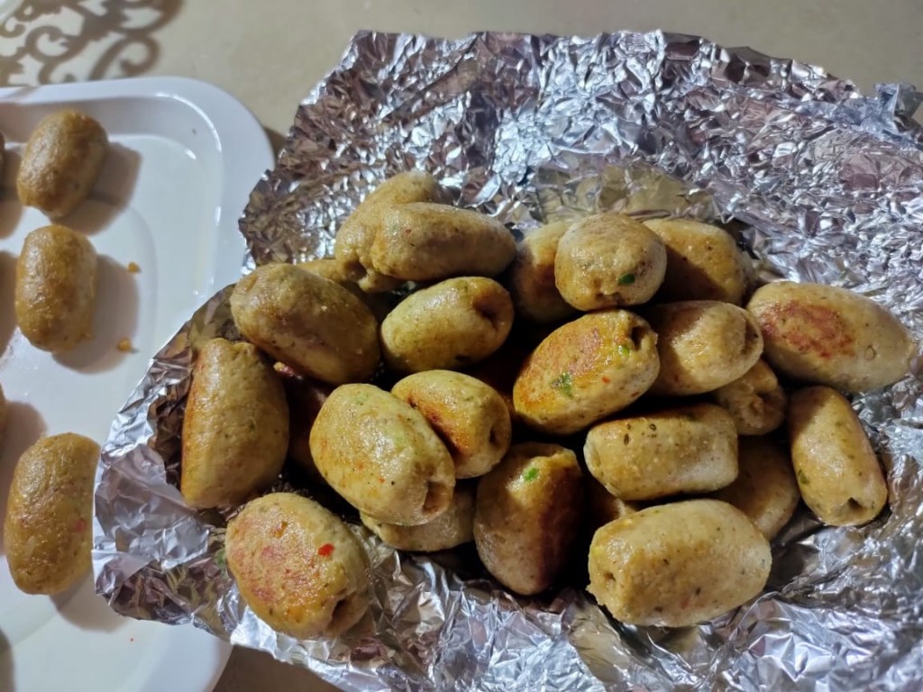 Take lil ball of batter make shape of gola kabab