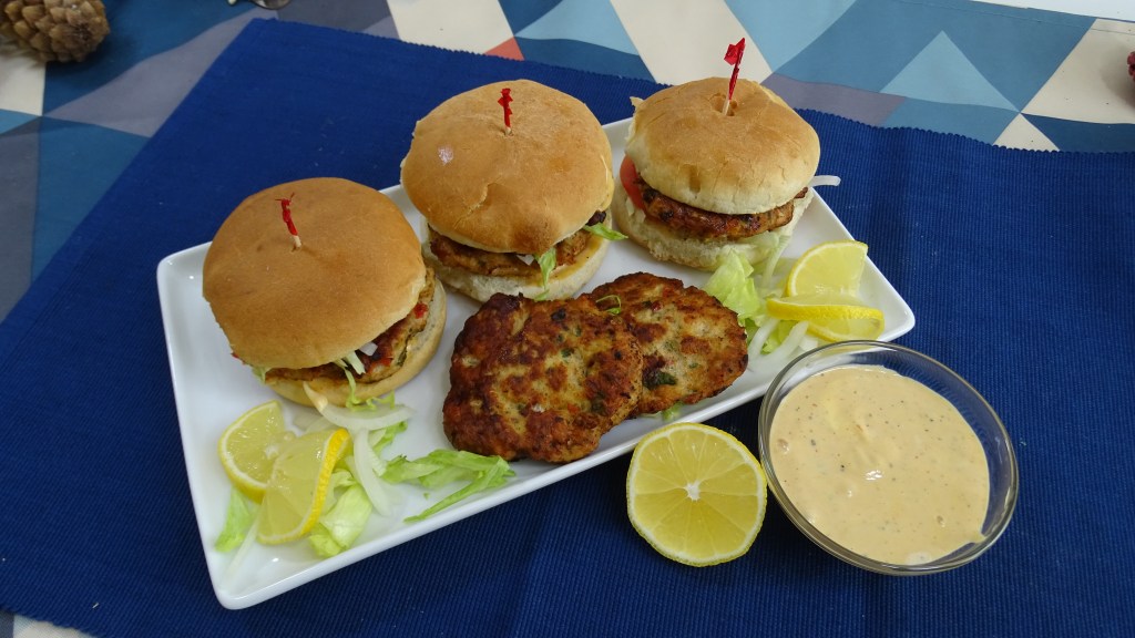 When patties are ready assemble the burger by applying burger sauce on both sides of bun, some salad, onion and tomatoes along with patty,
