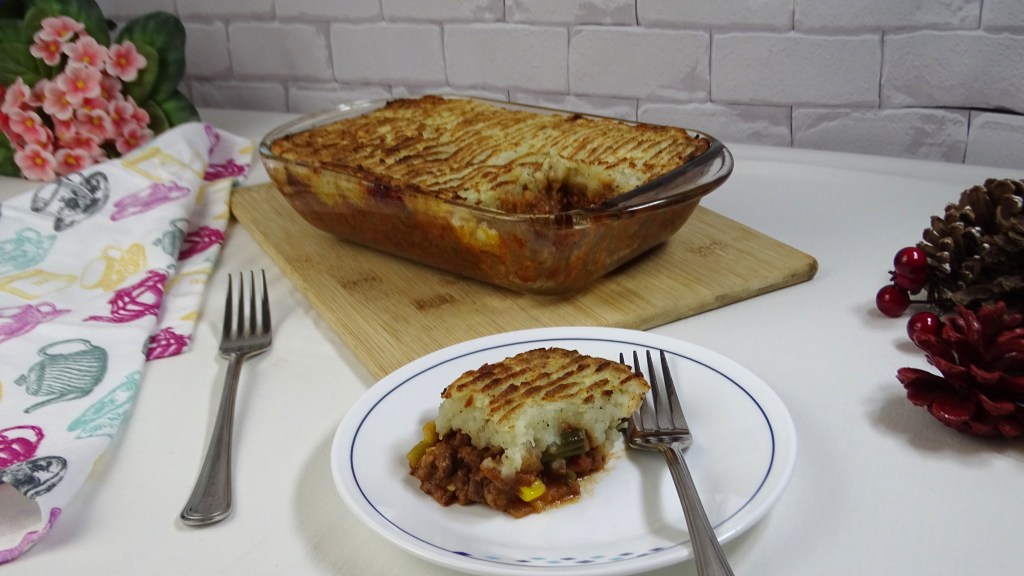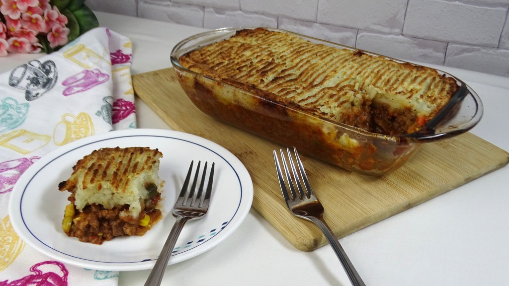 On top of gravy put mash potatoes and make a even smooth surface
