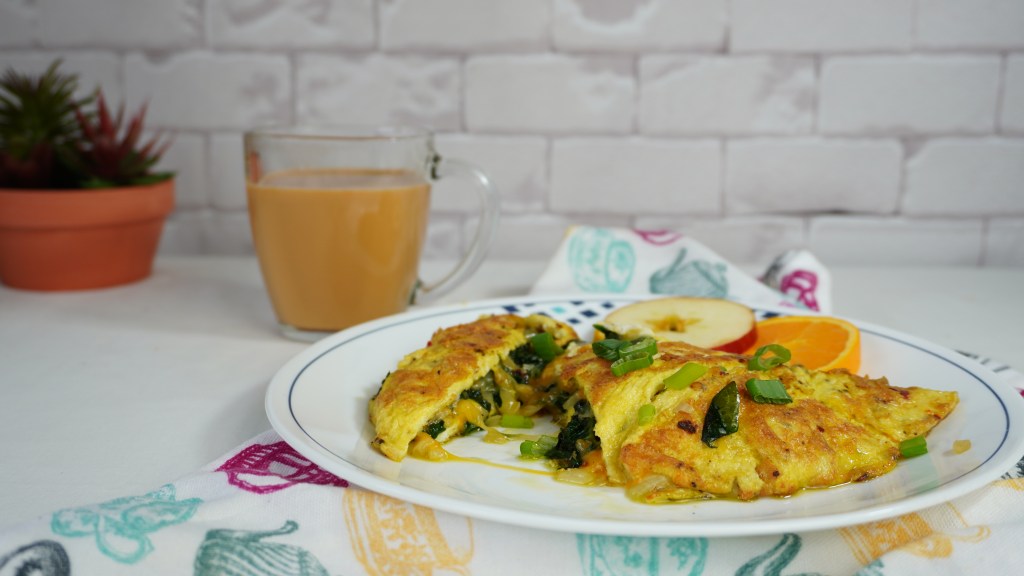 Place the spinach and onion mixture on one side of omelet,