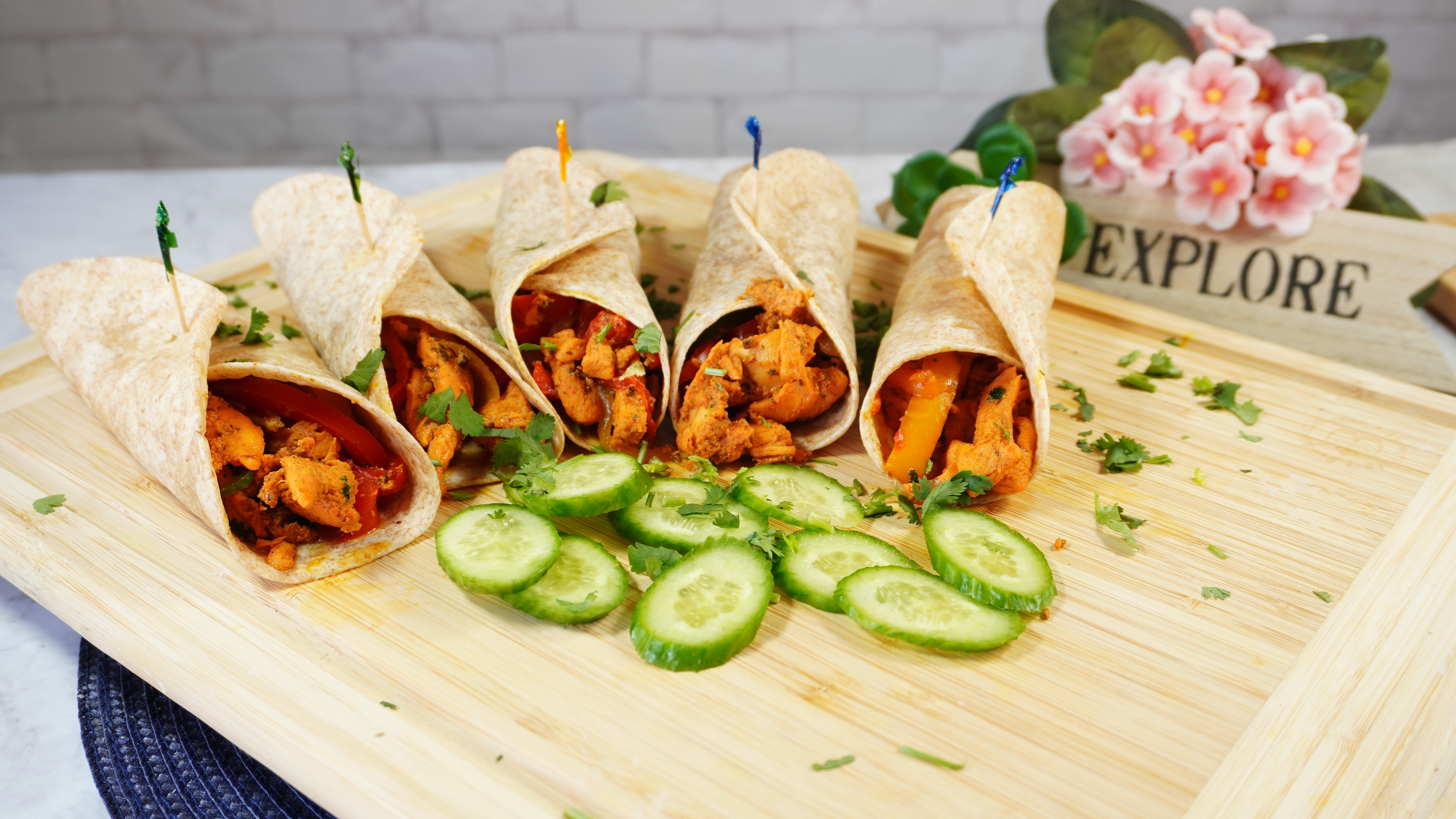 Place the desired amount of chicken mixture in to a tortilla wrap and serve.