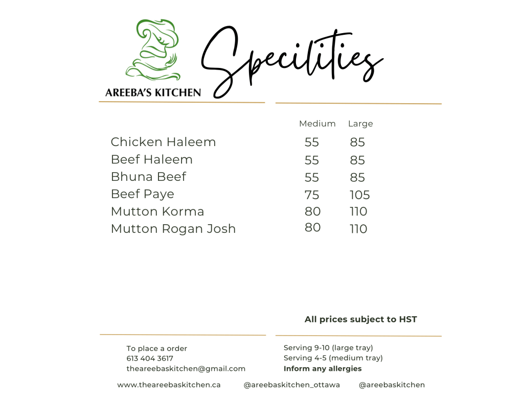 Contact for further details at 613 404 3617
